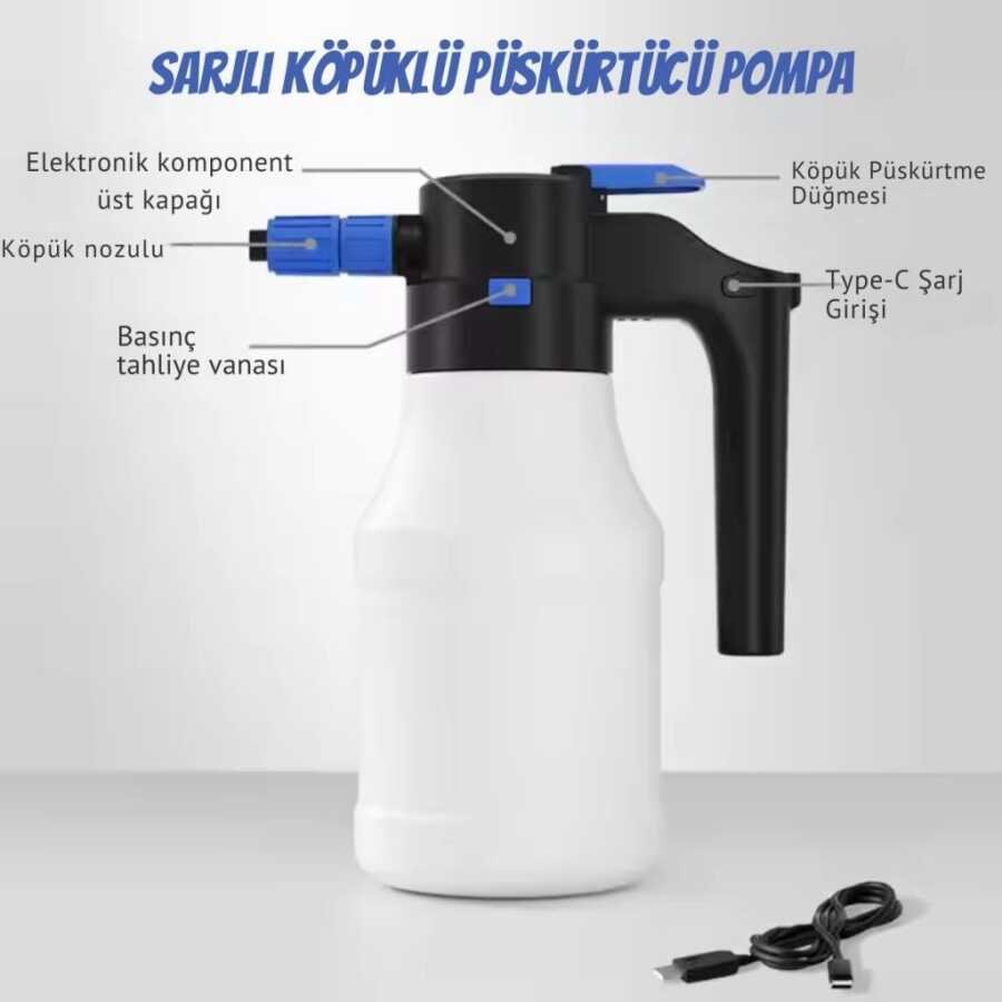 Şarjlı Otomatik 1.5 Litre Yüksek Basınçlı Araç Yıkama Köpük Püskürtücü El Pompası, Otomobil Temizleme Pompası