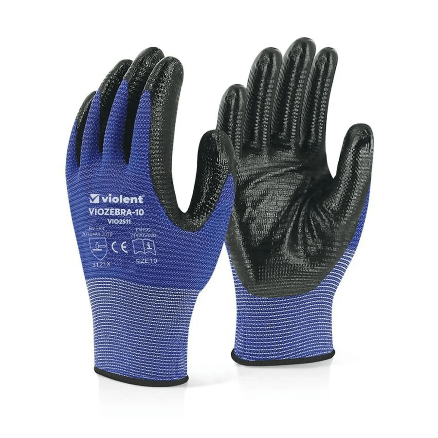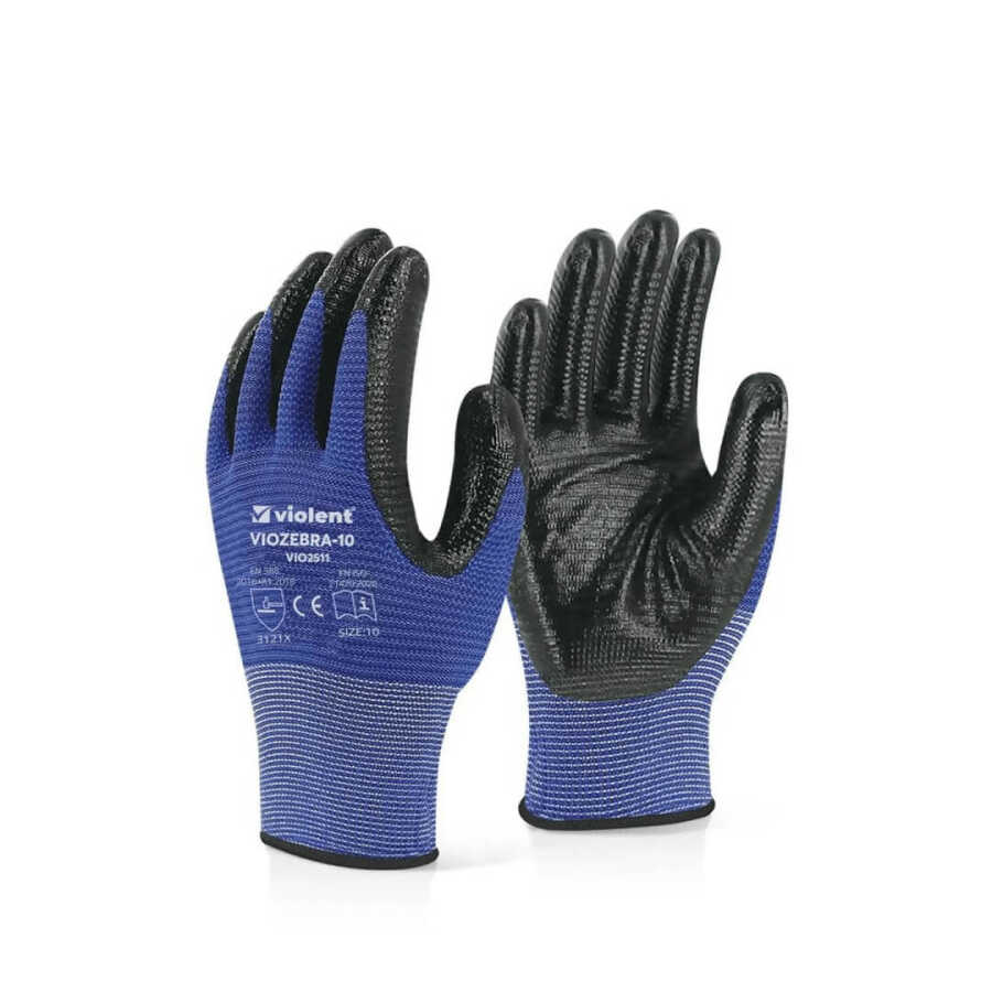 Violent VIOZEBRA-10 Mavi 2512 iş eldiveni, uzun süreli kullanımlarda maksimum konfor ve koruma sağlamak üzere tasarlanmıştır. Avuç içi lateks kaplı yapısı sayesinde yüksek kavrama gücü sunar, ıslak ve kuru yüzeylerde kaymayı önler. Esnek yapısı sayesinde ele tam oturur, hassas işlerde dahi hareket kabiliyetini kısıtlamaz.